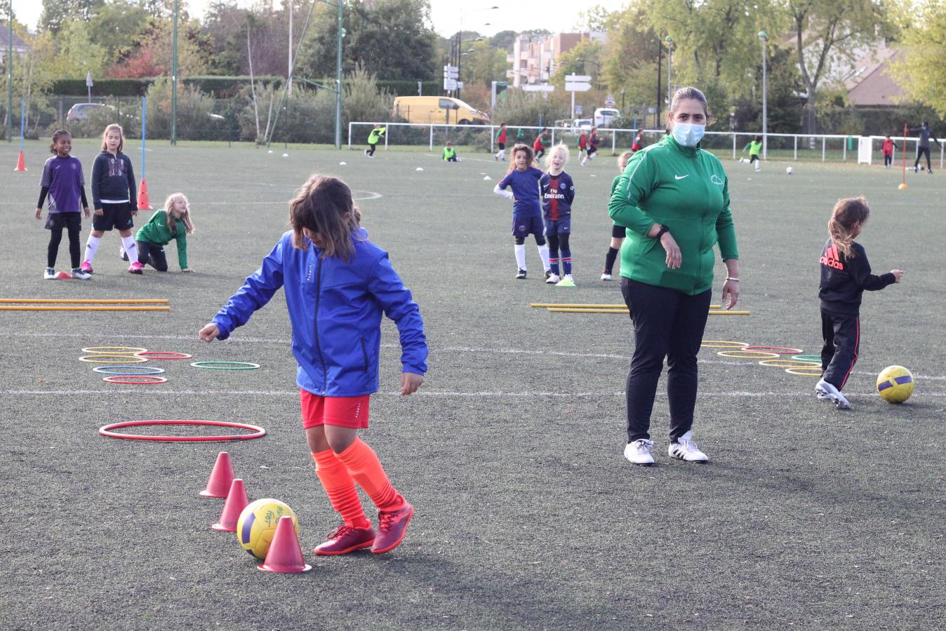 Notre groupe "fillofoot" (joueuses nées de 2012 à 2015) à l'entrainement de samedi dernier avec leur coach Sabrina.