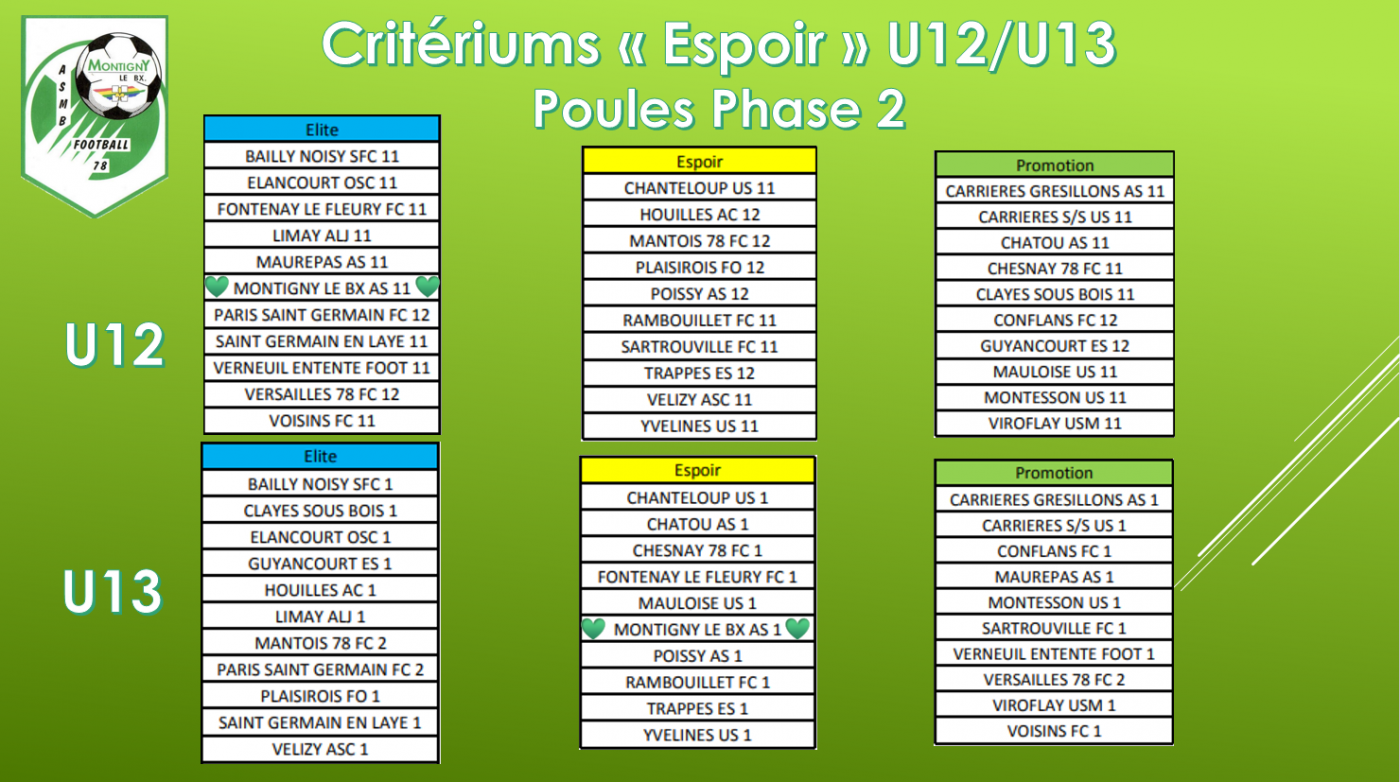 Voici les classements de la Phase 1 des Critériums U12 et U13 "Espoir"