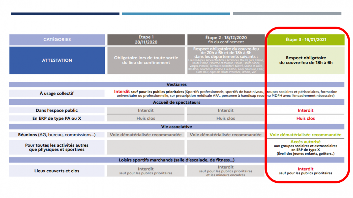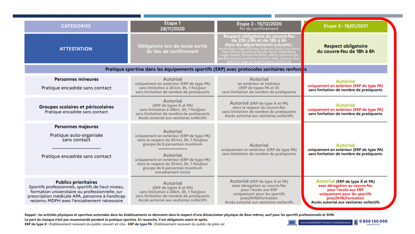 Déclinaison des mesures sanitaires pour le Sport à partir du 16 janvier 2021